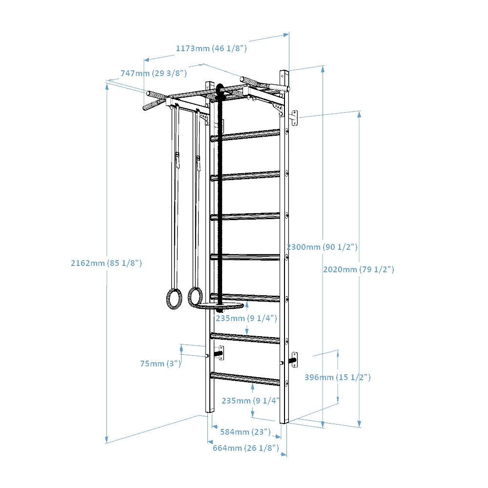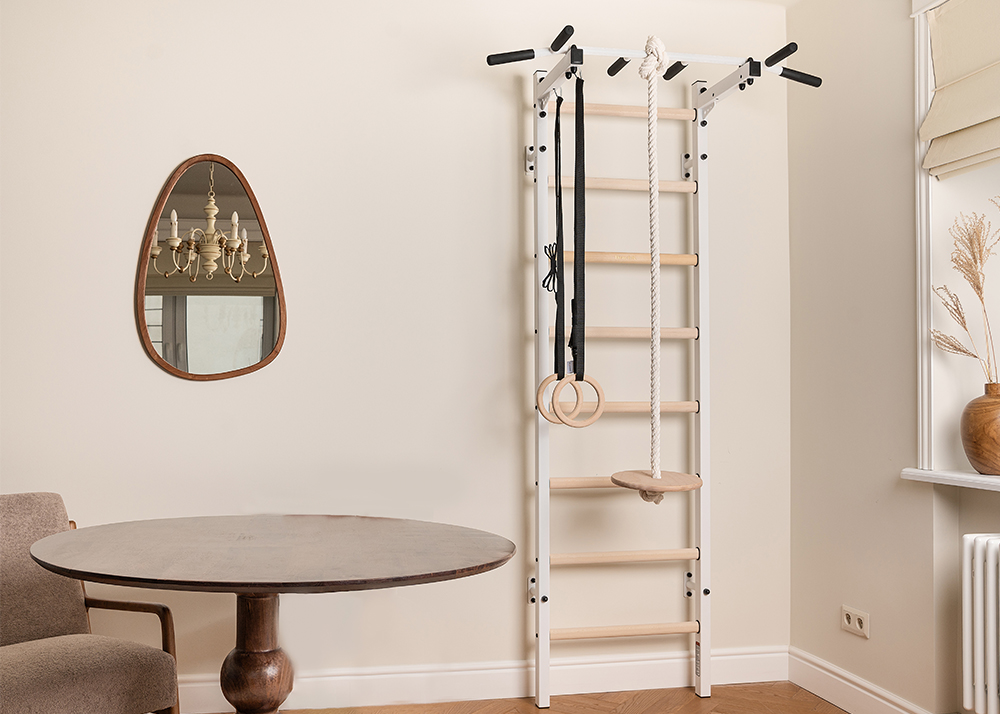 BenchK 221W+A204 sports wall bars is an attractive mix of classic and contemporary style. BenchK 221W+A204 is a practical sports equipment that ideally complements a living room or a children’s room. This multifunctional wall bars lets parents take care of their health and fitness while serving as a home playground for the children.