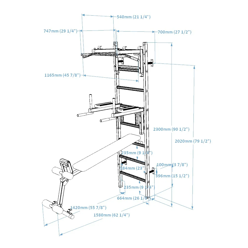 BenchK 233B wall bars is a combination of multifunctionality and design with the durability of professional sports equipment. BenchK 233B comprises the following elements:
