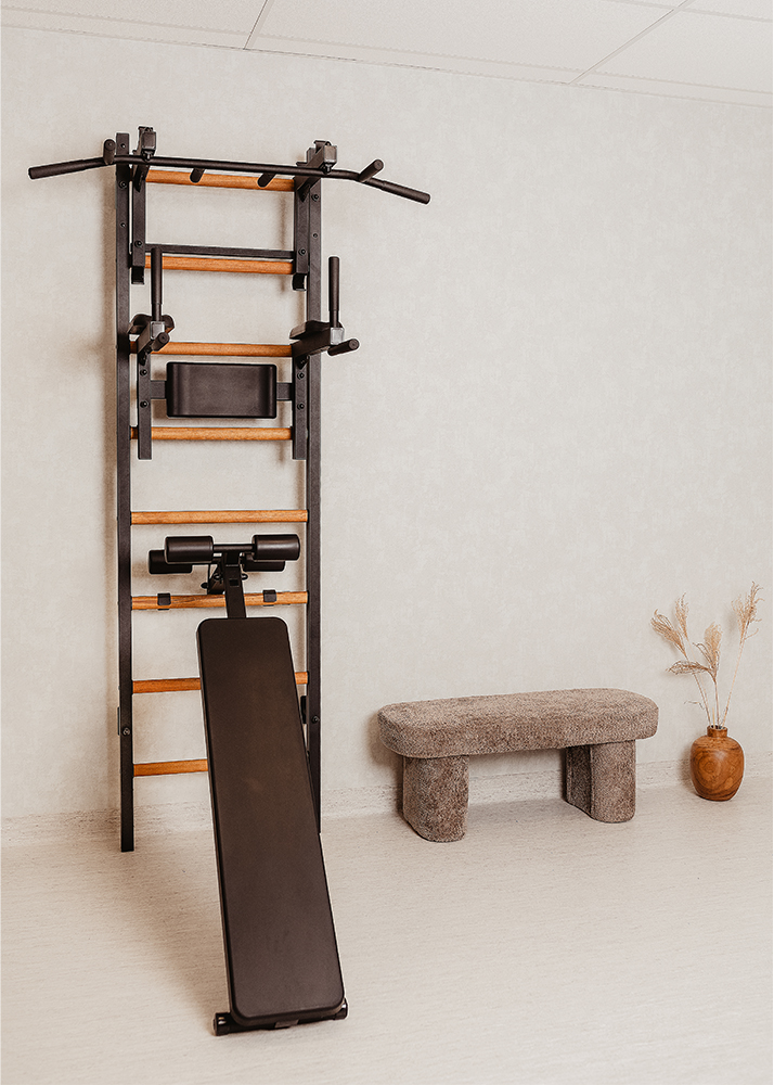 Attaching TRX straps to the wall bars makes it possible to exercise using your own weight. BenchK 233B multifunctional wall bars fits perfectly into your everyday, busy lifestyle. It completes a home, office or a public institution.