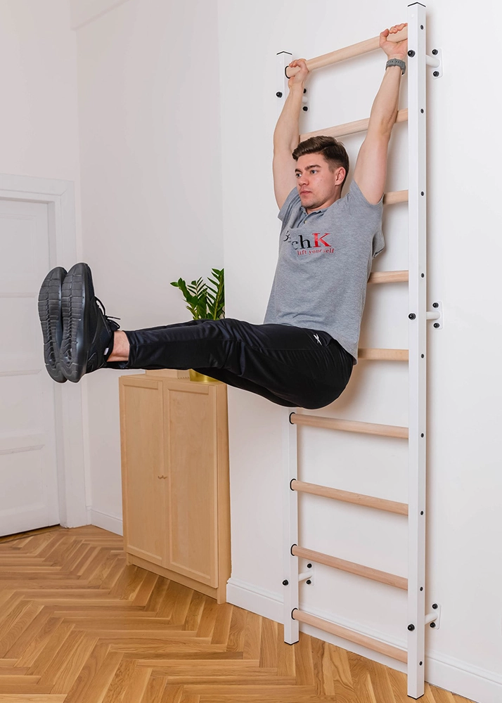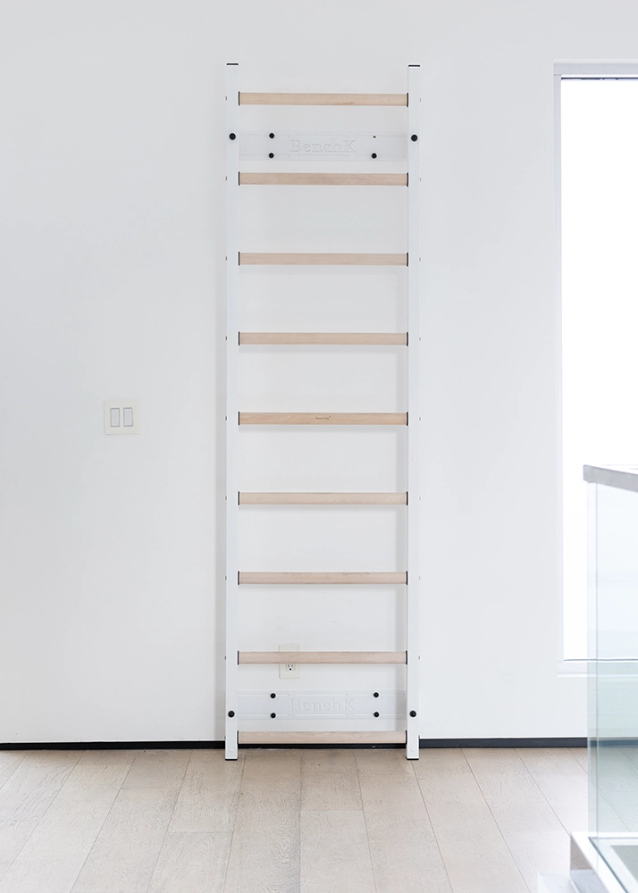 BenchK 700 wall bars is a modern take on a classic wooden wall bars. By combining solid beech wood and metal we created a piece of sport furniture, that will perfectly fit into a modern interior.