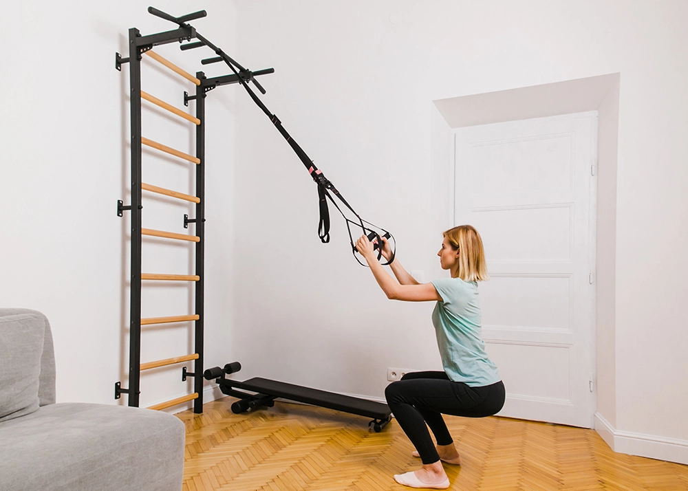 BenchK wall bars with a fixed steel 6-grip pull-up bar