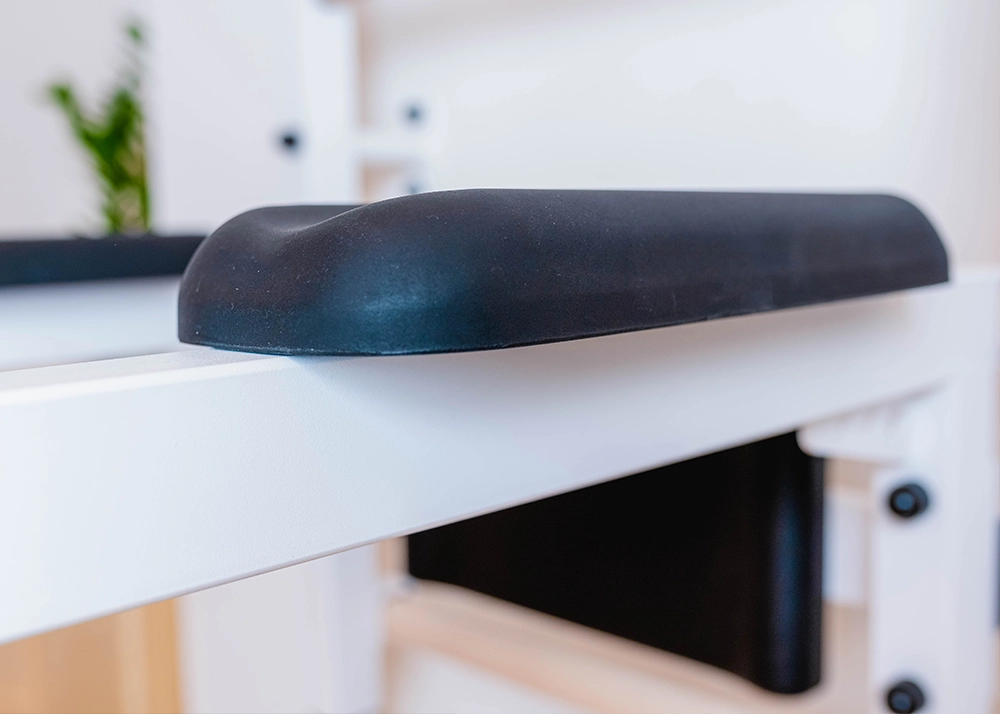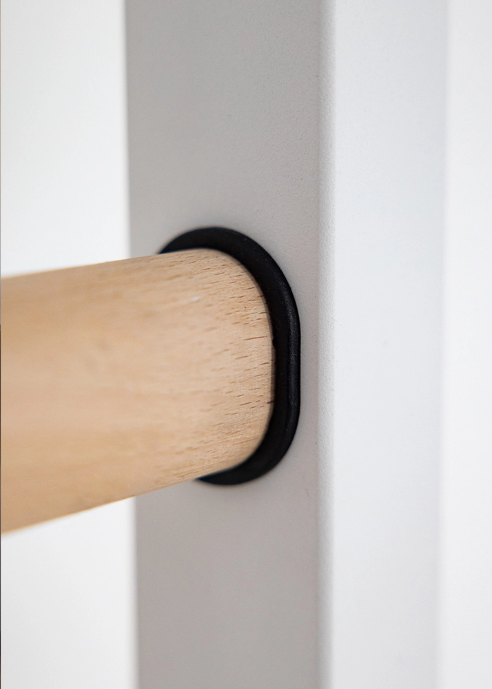 The rungs, made of solid beech wood, are not varnished but are hand-oiled with two layers of organic oil produced in Germany, based on linseed oil which is approved for contact with food. The combination of metal and natural wood gives an effect of a stylish and functional piece of sports furniture, which perfectly fits into a variety of interiors.