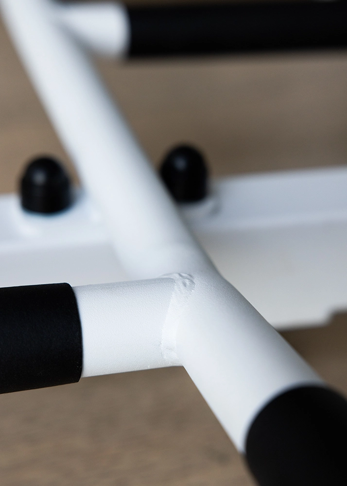 The height of the DB1 dip bar can be modified or it can be removed. The metal profiles of the wall bar have rectangular shape 40 x 50 mm/137⁄64” x 131⁄32” and are 2cm/05⁄64″ thick. They have been powder coated white matte, which adds to their durability. The precision of every detail has been achieved thanks to the use of modern technologies of laser cutting and joining.