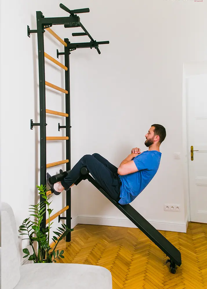 Includes an assembly kit (does not include wall mounting set, as its type depends on the type of wall which the gymnastic ladder will be attached to). The decision and responsibility for the method of installation of the gymnastic ladder rests with the customer. Wall mounting is not possible to a plasterboard wall. The minimum required wall thickness in the case of installation with the use of Fischer expansion bolts available from BenchK is 12 cm/4,7″. In all other cases, it is a recommended thickness only. For other wall fixings please see manufacturers recommendations.