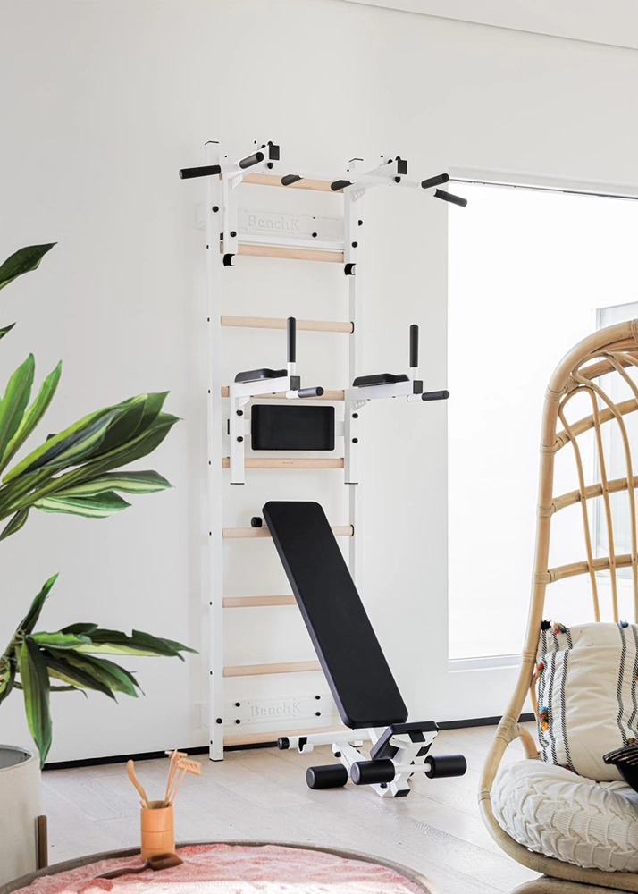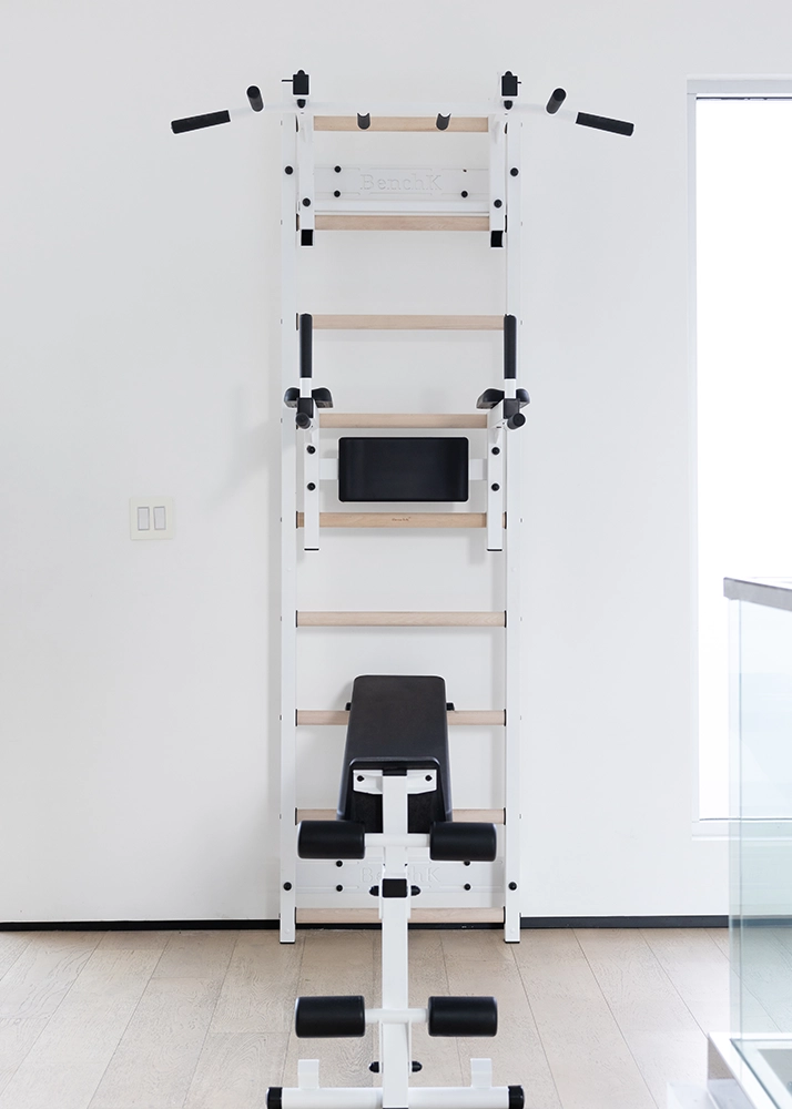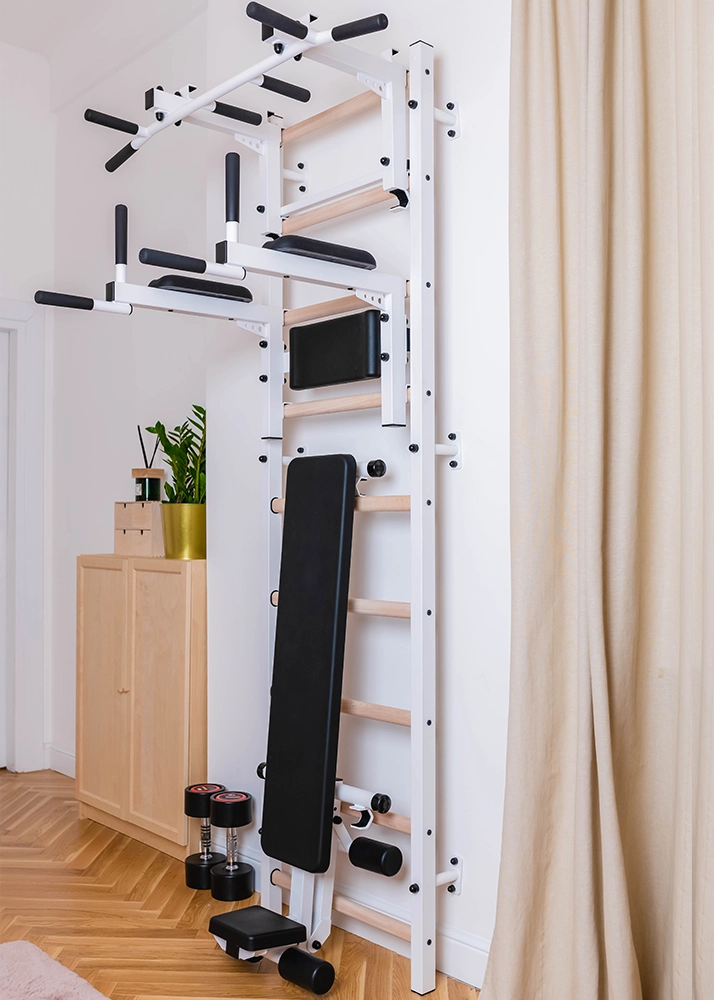 Attaching TRX straps to the wall bar makes it possible to exercise using your own weight. BenchK 733 multifunctional wall bar fits perfectly into your everyday, busy lifestyle. It completes a home, office or a public institution.
