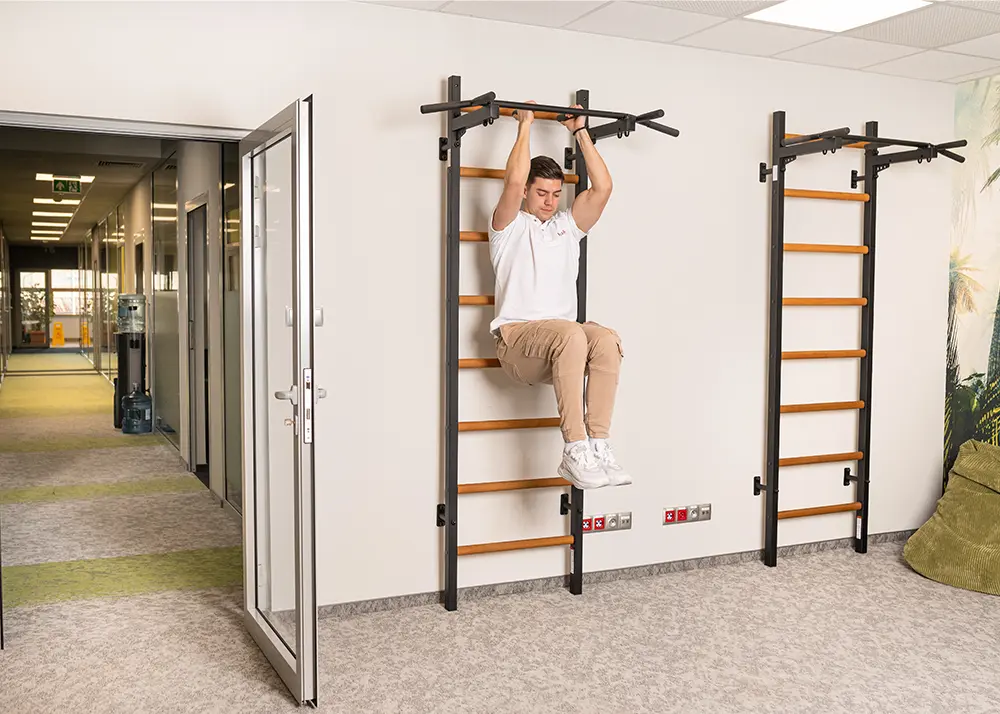 BenchK PB2 available in black and white has been designed for BenchK series 7. It is permanently fixed to the top of the wall bars. The pull up bar has six non-slip handles, which make exercising more varied and easier.