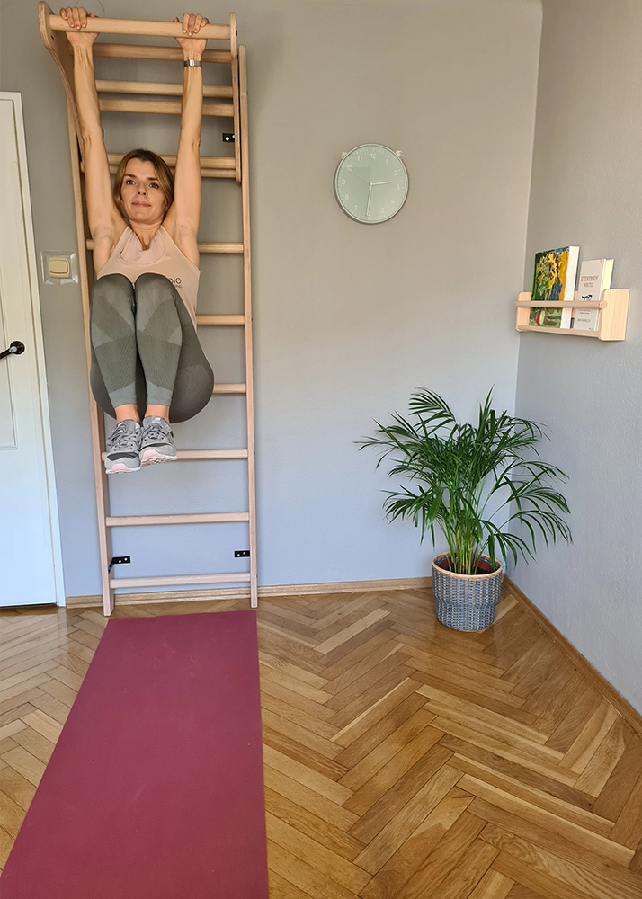 A stall bar made in Poland conforming to European safety standards PN-EN 12346:2001, PN-EN 913:2019-03 for gymnastic equipment.