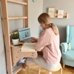 Wooden stall bars childrens ladder for home – BenchK 112 with desk