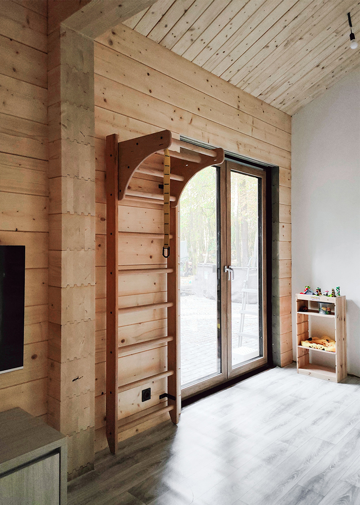 • Adjustable wooden pull-up bar;