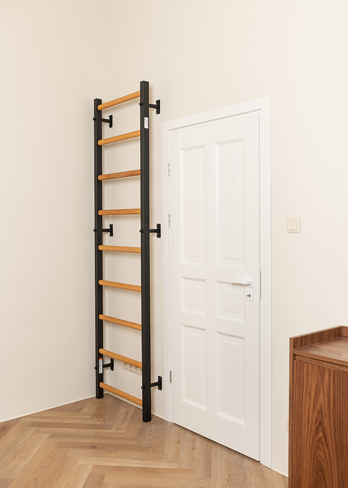 BenchK 700 wall bars is a modern take on a classic wooden wall bars. By combining solid beech wood and steel we created a piece of sport furniture, that will perfectly fit into a modern interior.